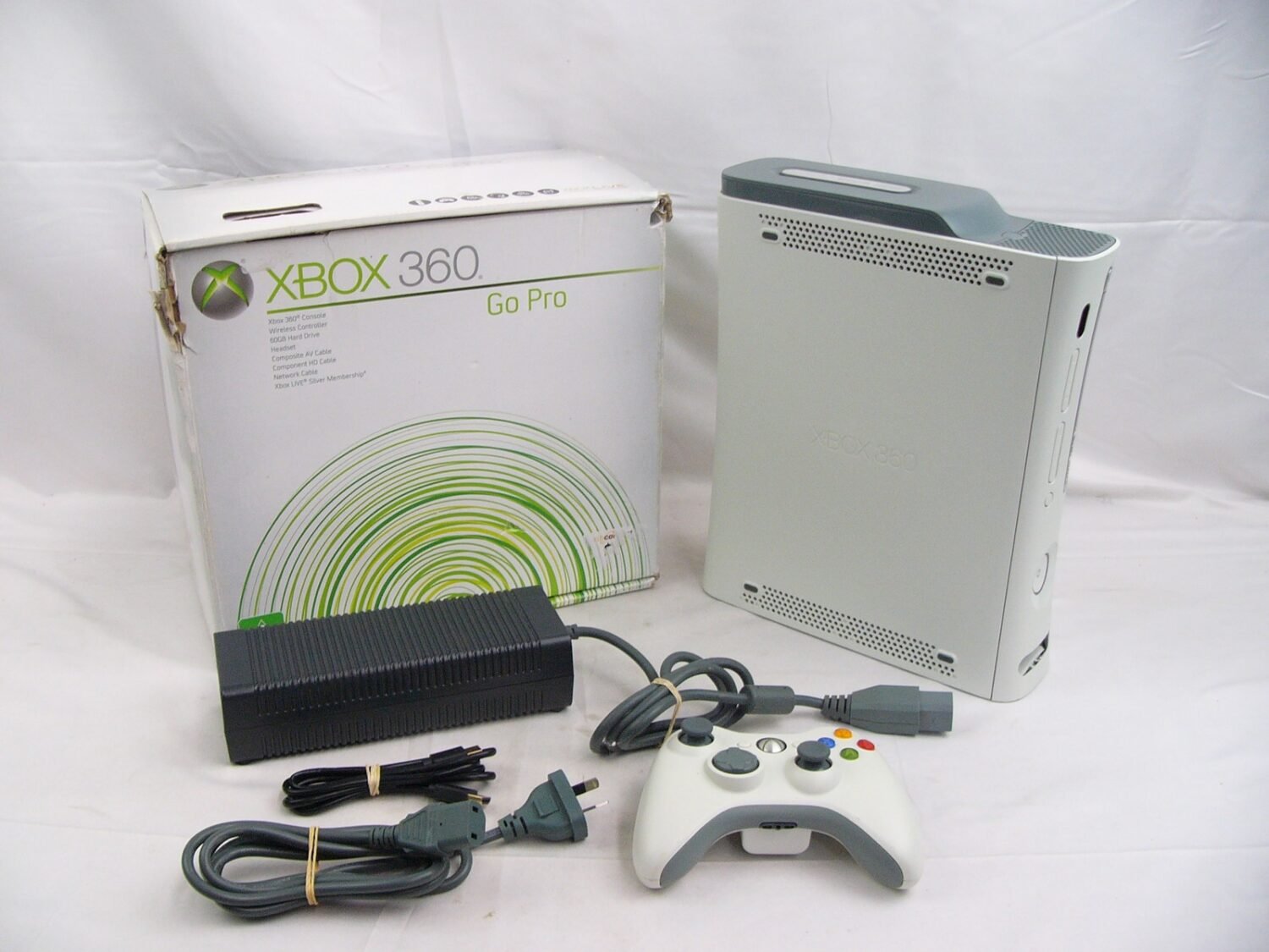 Boxed Xbox 360 Console Go Pro 60GB HD + Cables + Controller